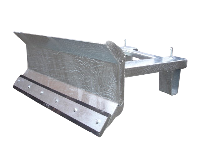 A fork-mounted snow plough for tradespeople and site managers to clear fresh or compacted snow from car parks, access roads and service yards.