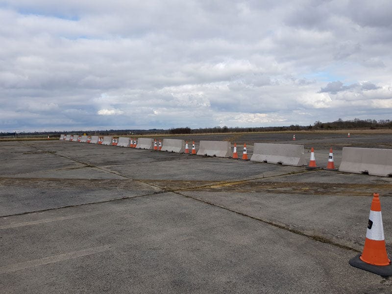 The concrete road barriers are 2.5m long and interconnect, each holding the next barrier securely.
