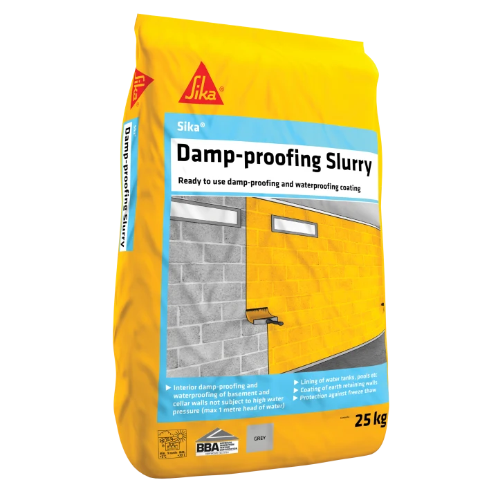 Sika Damp-proofing Slurry is a one-part polymer-modified cement-based waterproof coating comprising special cement-based components and admixtures. When mixed with water, a slurry or mortar material is produced for direct application to various construction substrates. Get ultimate protection with Sika Damp Proofing Tanking Slurry. Its one-part polymer-modified cement-based formula makes it easy to apply and provides a strong waterproof coating. Mix with water and apply to any construction substrate for a reliable solution. Don't take chances,